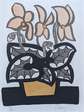 12月のテーマは「師走」 画廊窓に洋画2点、日本画1点、版画2点と巧藝画1点 1.奥村土牛「山茶花」 巧藝画・額装 7万円 2.北川民治「シクラメン」 リトグラフ・12/100 15万円 3.松田正良「ピエロ」 洋画油彩・3号 8万円 道化師も走る... 4.荻太郎「プロフィール(横顔)」 リトグラフ・58/100 12万円 5.柿原康伸「冠雪の妙高山」 洋画油彩・3号 15万円 6.宮西東洋雄「遠山新雪」 日本画・10号 55万円